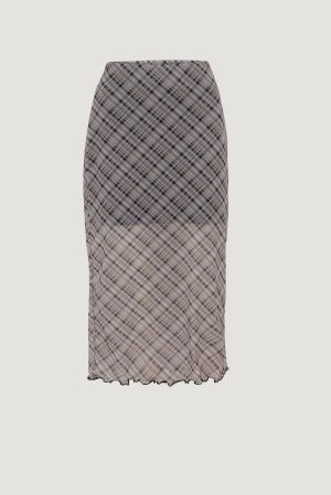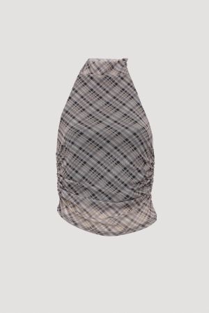 O top frente única em tule com padronagem xadrez e gola alta ajustada é perfeito para compor looks modernos e femininos com um toque retrô. A modelagem justa ao corpo adiciona charme à peça, enquanto o tecido conta com elasticidade leve que garante conforto e caimento perfeito. Saia disponível por R$ 59,99 e gola alta por R$ 29,99.